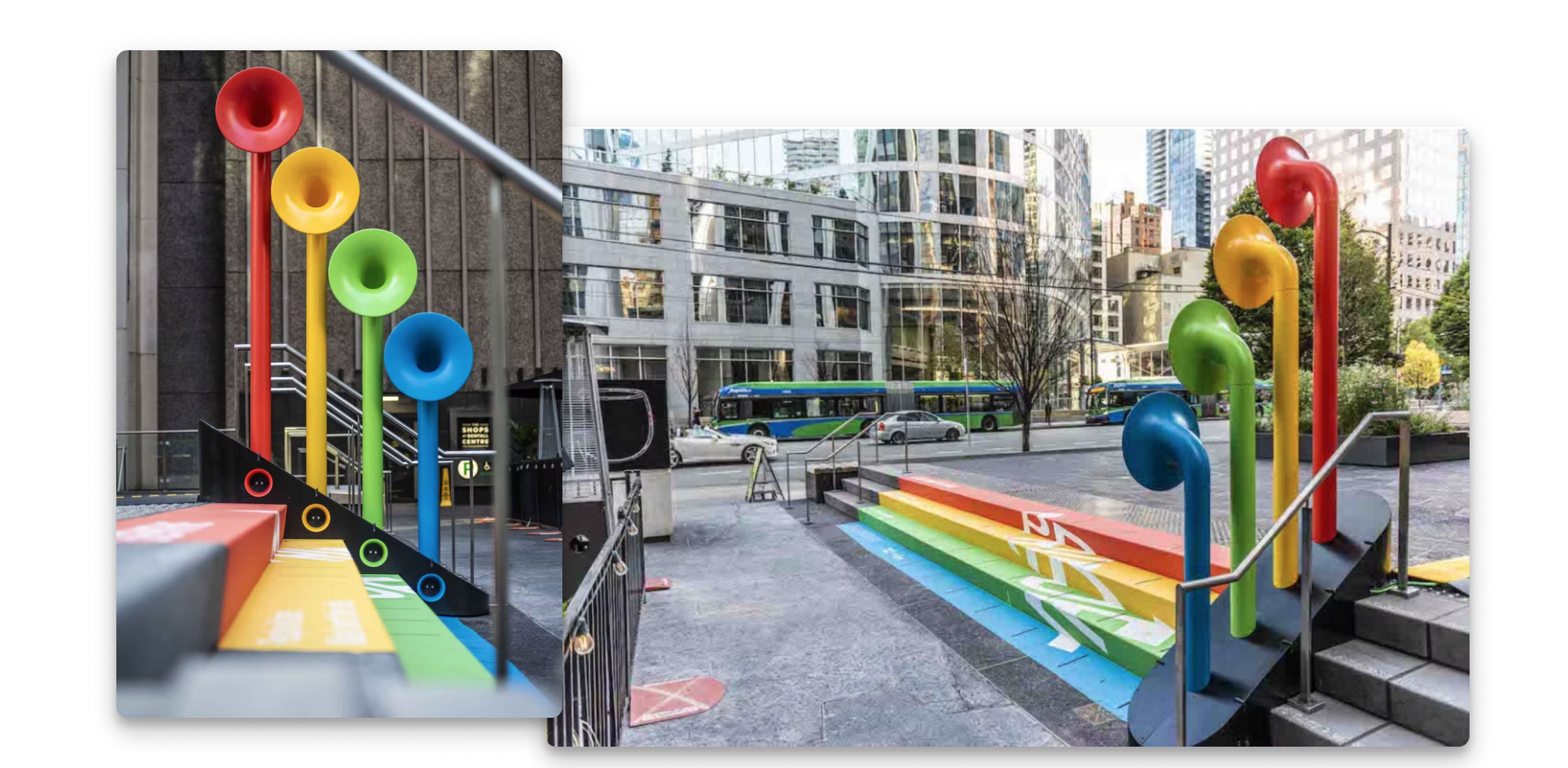 Step With Me is an interactive public art exhibition created for Pride 2021, featuring a musical staircase installation that allows participants to create and perform music through movement. The installation transforms a public staircase into an interactive musical instrument, encouraging community engagement and creative expression during Pride celebrations.